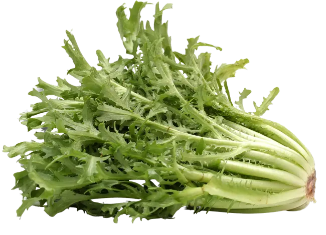 Forma: espezie honen kontsumo-organoa erroseta da. Erdiko nerbio zuri bati lotutako 50 hosto leun edo kizkur (batez ere neguko barietateak) edo gehiagok osatzen dute.